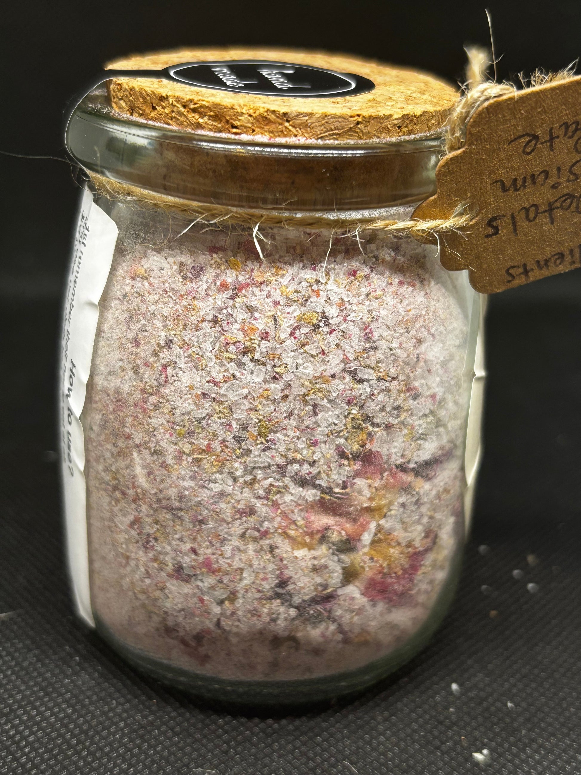Salted Rose is a luxurious and soothing blend of mineral-rich salts combined with the delicate fragrance of rose petals. Basic but romantic perfect for your self care night.