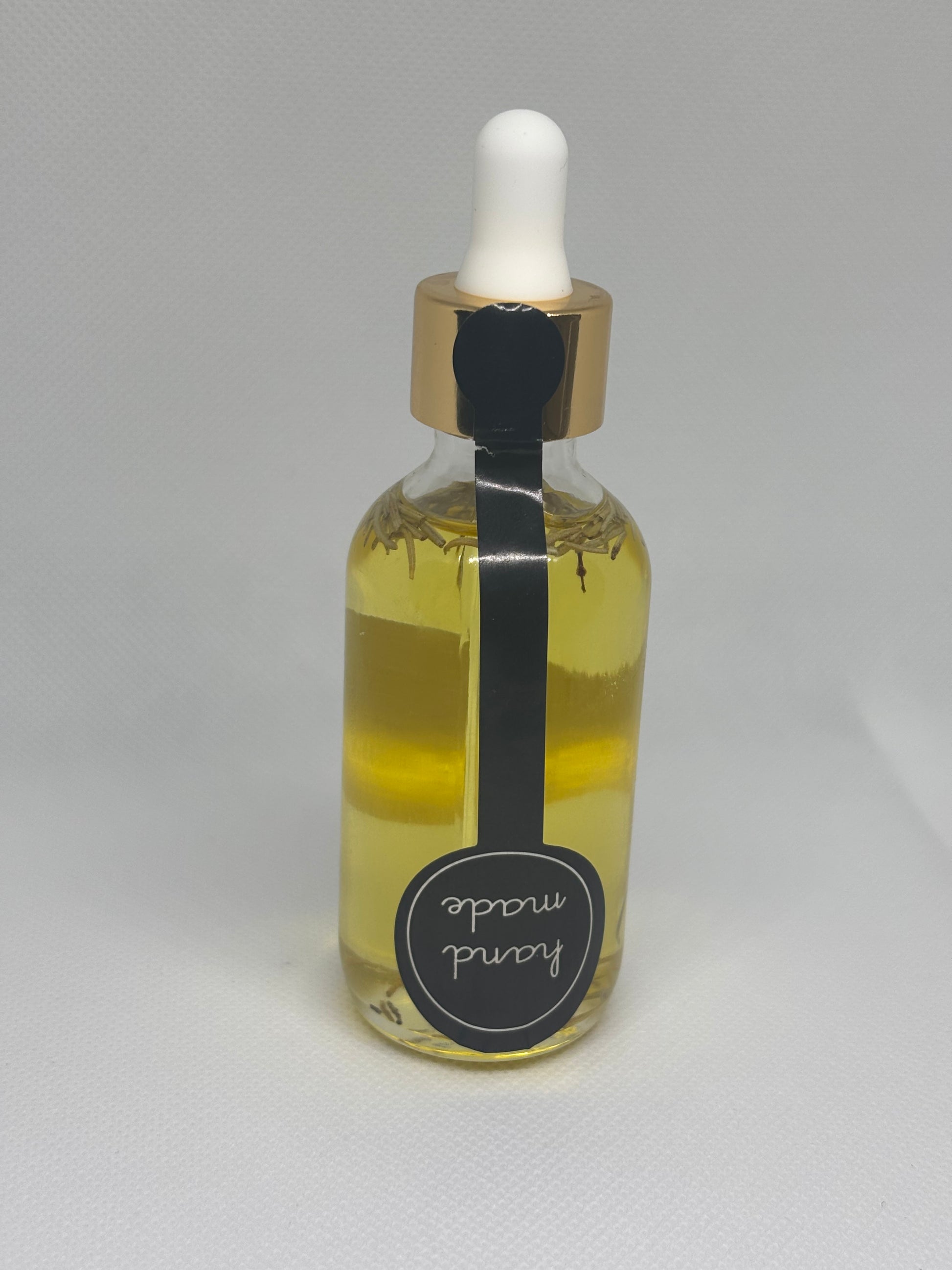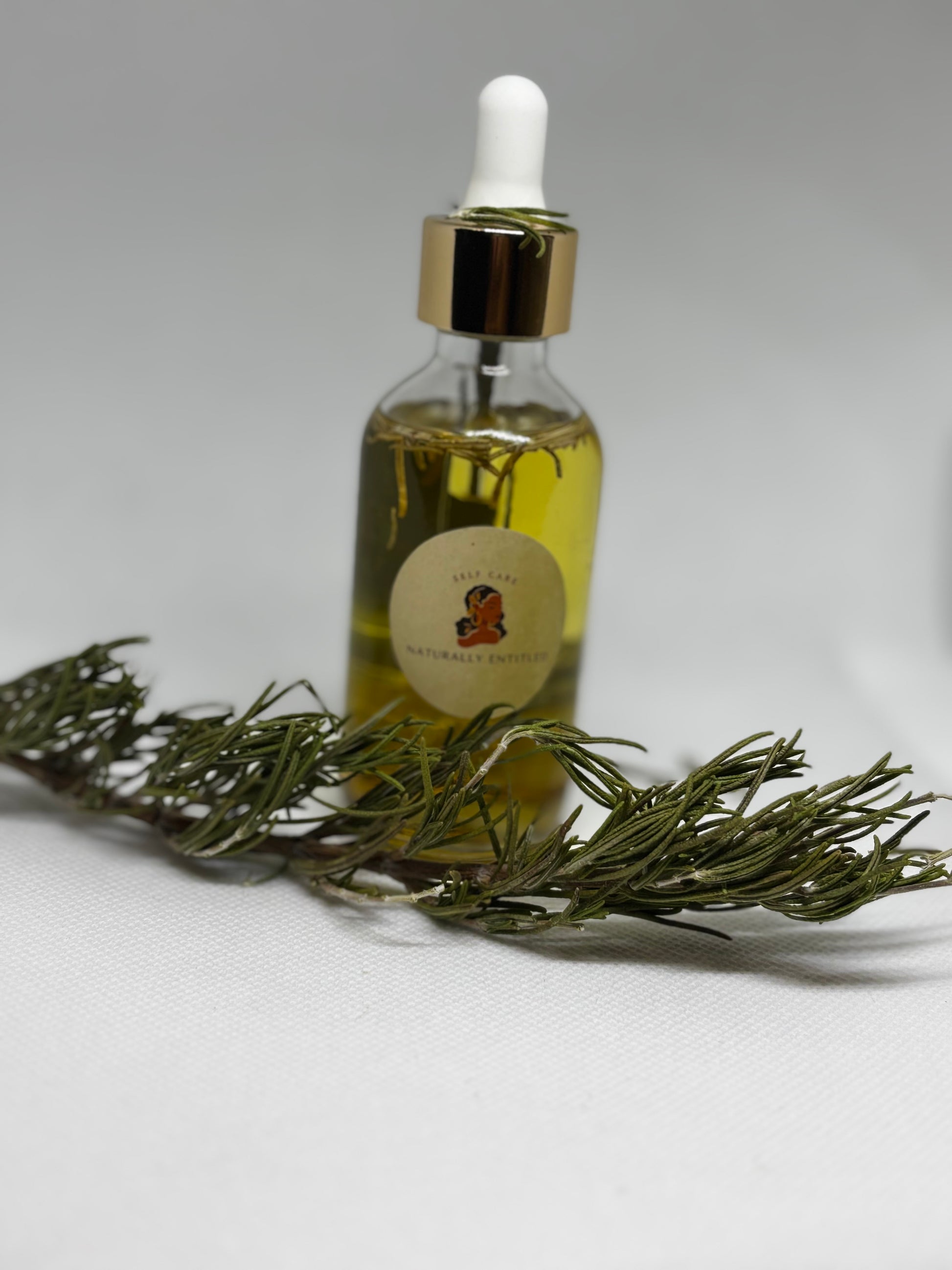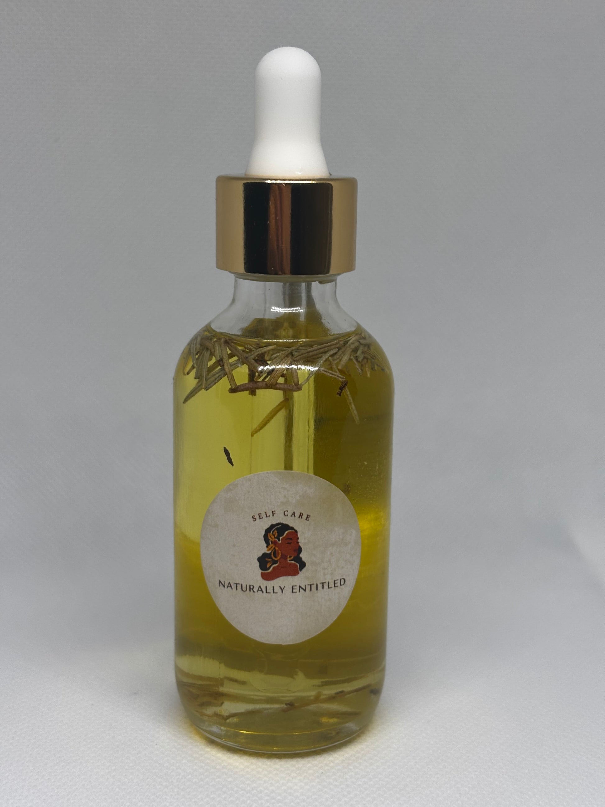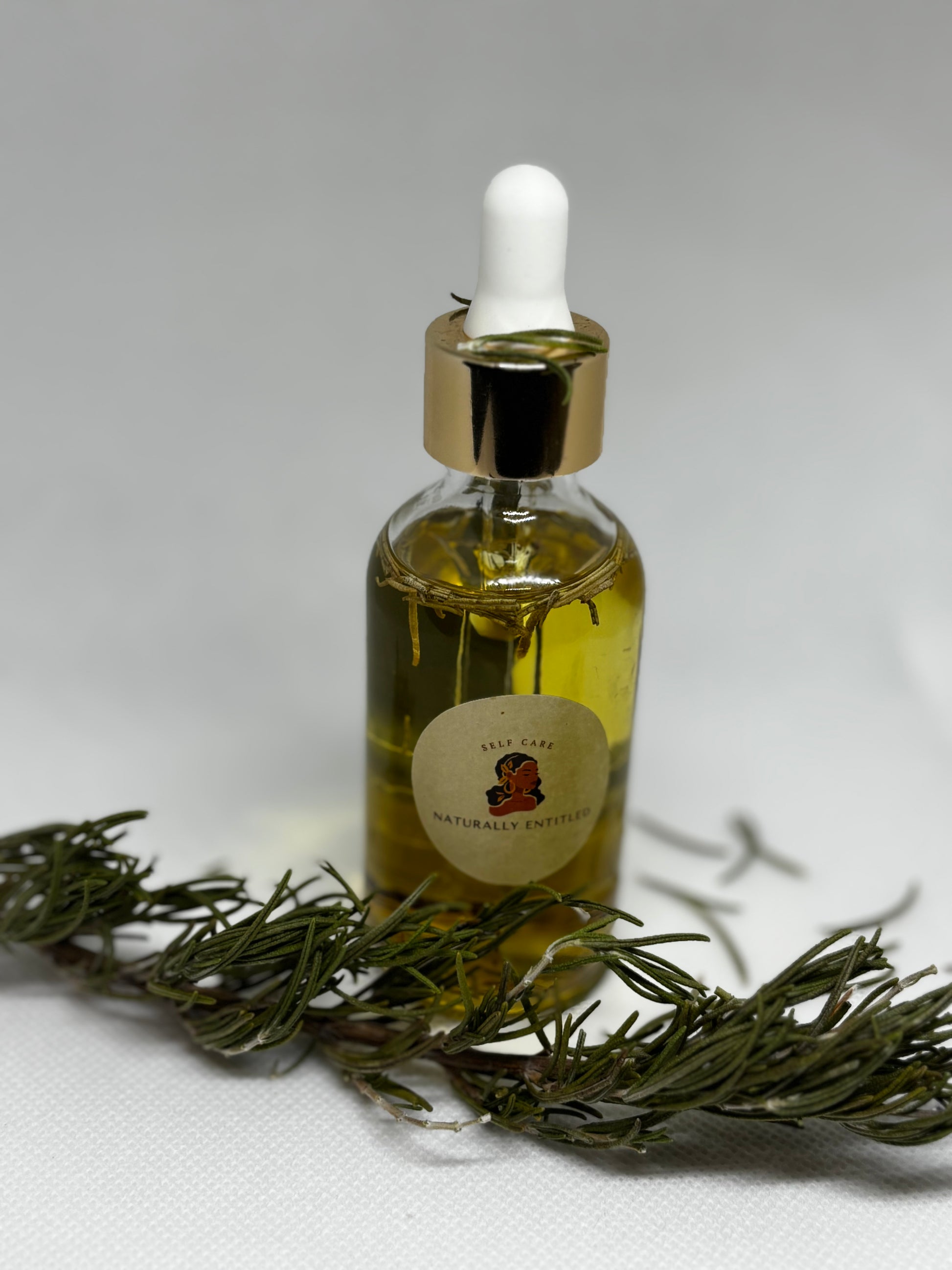 This powerful blend of cold-pressed oils is designed to nourish and protect both your hair and scalp. Packed with rich, natural oils, it works to prevent breakage, heat damage, and dryness, while locking in moisture for soft, healthy-looking hair. Infused with rosemary, known for its stimulating properties, this blend also promotes scalp health and encourages hair growth. Whether you're looking to repair damage, strengthen your strands, or simply keep your hair hydrated and shiny, this nourishing oil blend is your go-to solution for healthier, more resilient hair.